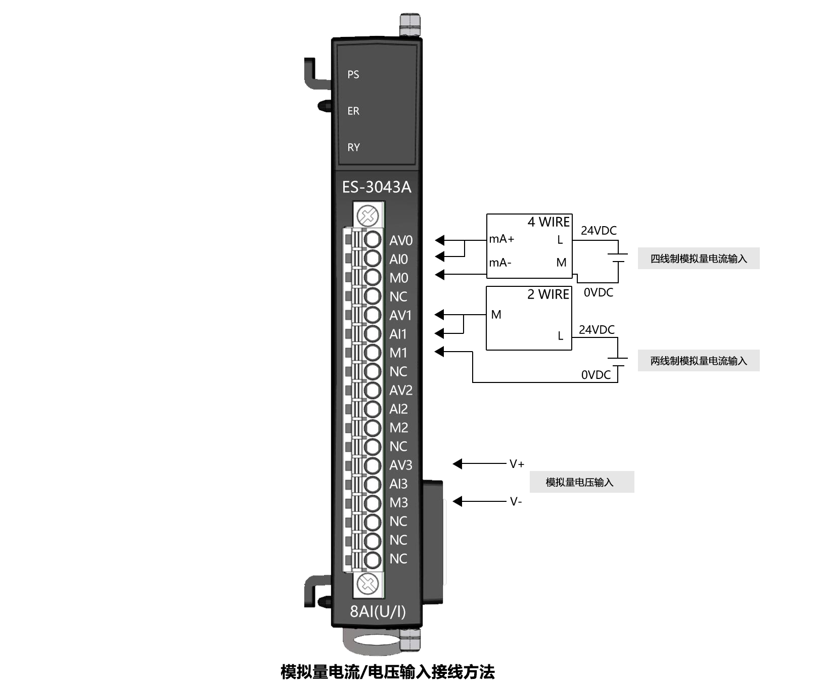 薄片型多功能分布式I/O,模擬量輸入4AI,分辨率16位,采樣誤差±0.1%(滿量程),0~20mA,4~20mA(斷線檢測),0~10V,±10V,24VDC