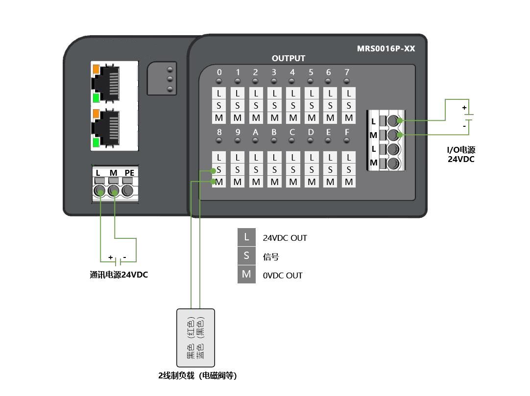面板式快接線分布式I/O,CC-Link IE FiledBasic通訊,2xRJ45,可級聯;數字量16出 PNP,24VDC,0.5A,歐式彈簧端子;導軌安裝&打孔安裝(下單時需備注)