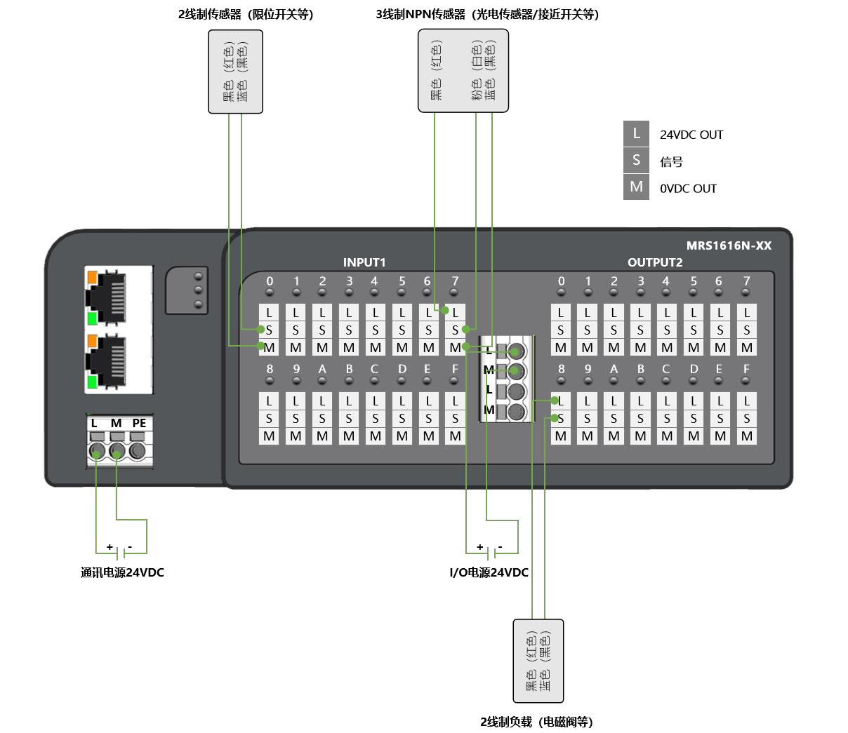 面板式快接線分布式I/O,EtherNet/IP通訊,2xRJ45,可級聯(lián);數(shù)字量16入16出 NPN,24VDC,0.5A,歐式彈簧端子;導軌安裝&打孔安裝(下單時需備注)