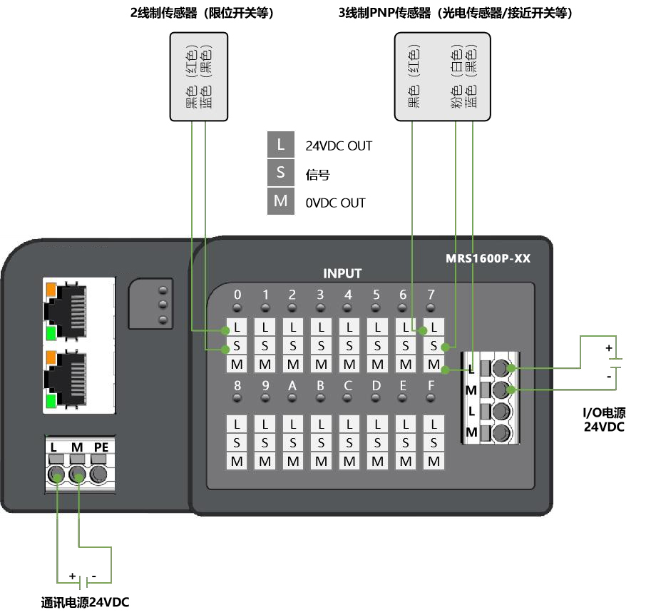 面板式快接線分布式I/O,CC-Link IE FiledBasic通訊,2xRJ45,可級聯;數字量16入 PNP,24VDC,歐式彈簧端子;導軌安裝&打孔安裝(下單時需備注)