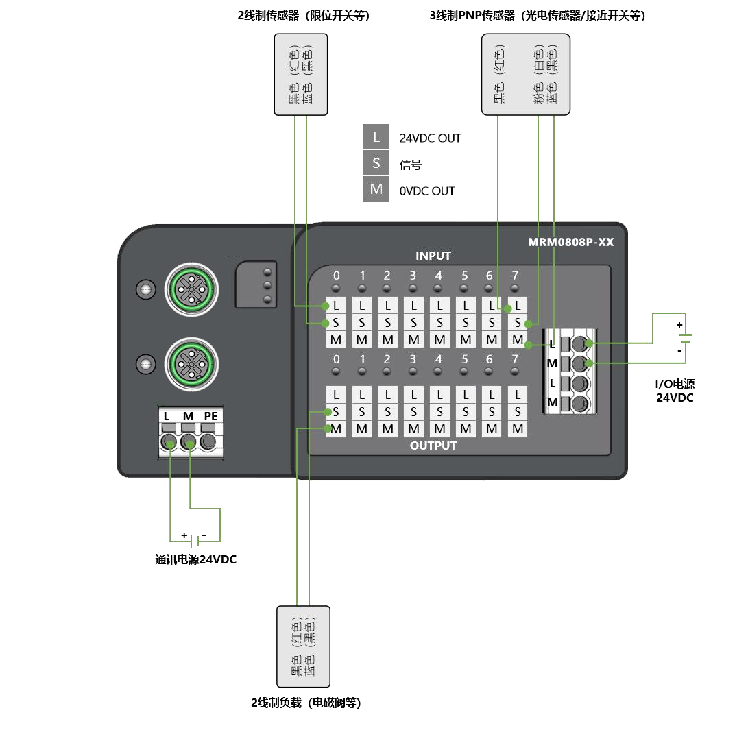 電源接口:模塊供電:3P歐式彈簧端子;負載供電:4P歐式彈簧端子