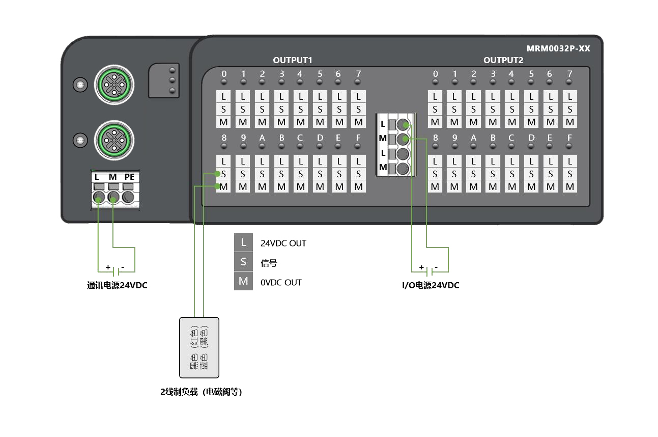 面板式快接線分布式I/O,PROFINET通訊,2xM12,可級聯;數字量32出 PNP,24VDC,0.5A,E-con連接器;導軌安裝&打孔安裝(下單時需備注)