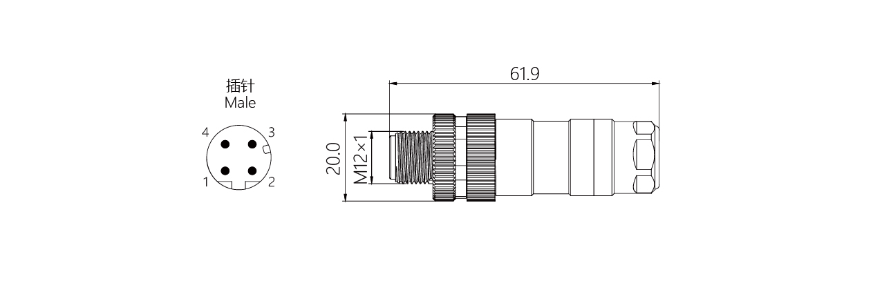 規(guī)格描述:M12連接器,直型針,螺釘接線,D-Code